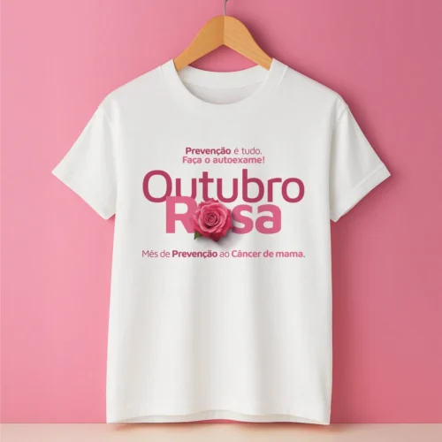 Camiseta Outubro Rosa – Unissex (100% Poliéster)